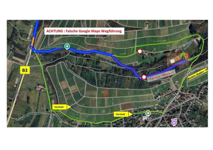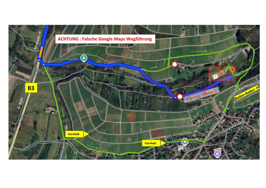 Die Navigation mittels GOOGLE-Maps leitet unsere Gäste über einen Feldweg.